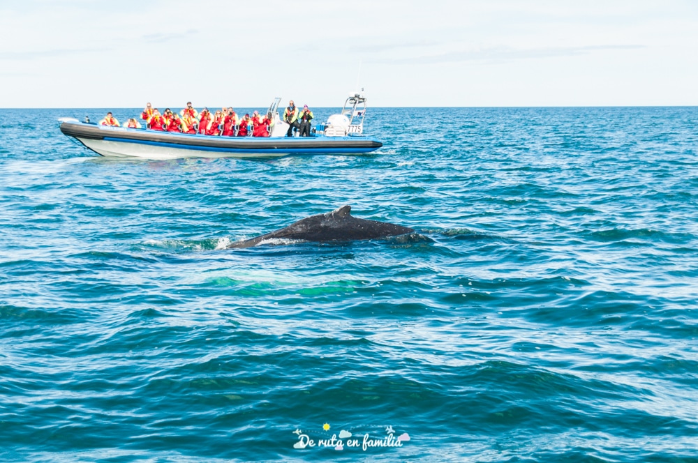 Sin embargo, el municipio es famoso porque durante los meses de verano, en su bahía, conocida como Skjálfandi, pueden alimentarse hasta once especies diferentes de ballenas y delfines. Así pues, nada más llegar nos dirigimos a los puntos de venta de los tickets que te permiten coger un barco y adentrarte en aguas árticas y ver a estos espectaculares animales.