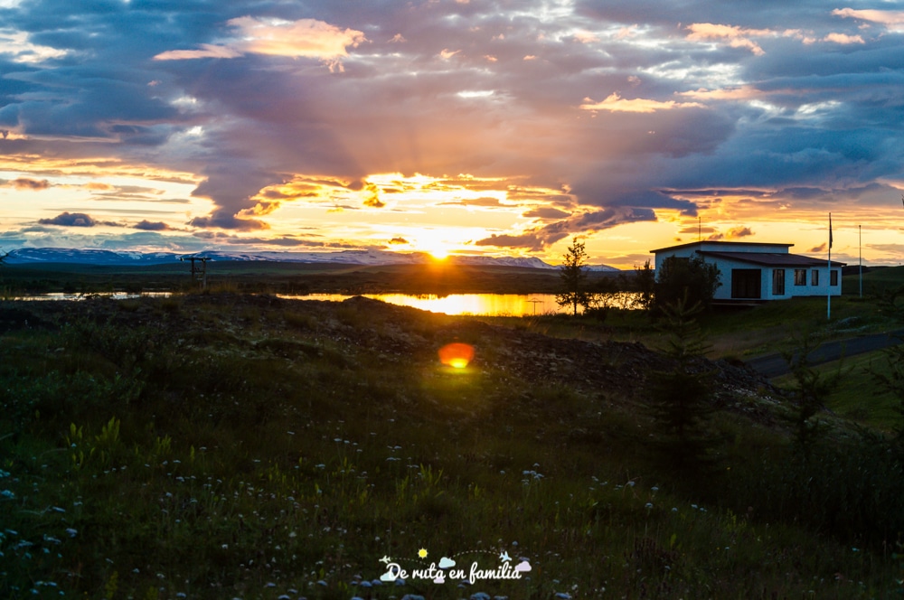 Una vez superados los más de 50 kilómetros de grava y piedra, nos dirigimos hacia la zona del lago Myvatn, donde teníamos el alojamiento de esa noche, el B&B Skútustaðir Farm House (Skútustaðir, 2b. Myvatnssveit), que habíamos reservado directamente por correo electrónico y que nos salió por 99€ con desayuno incluido.