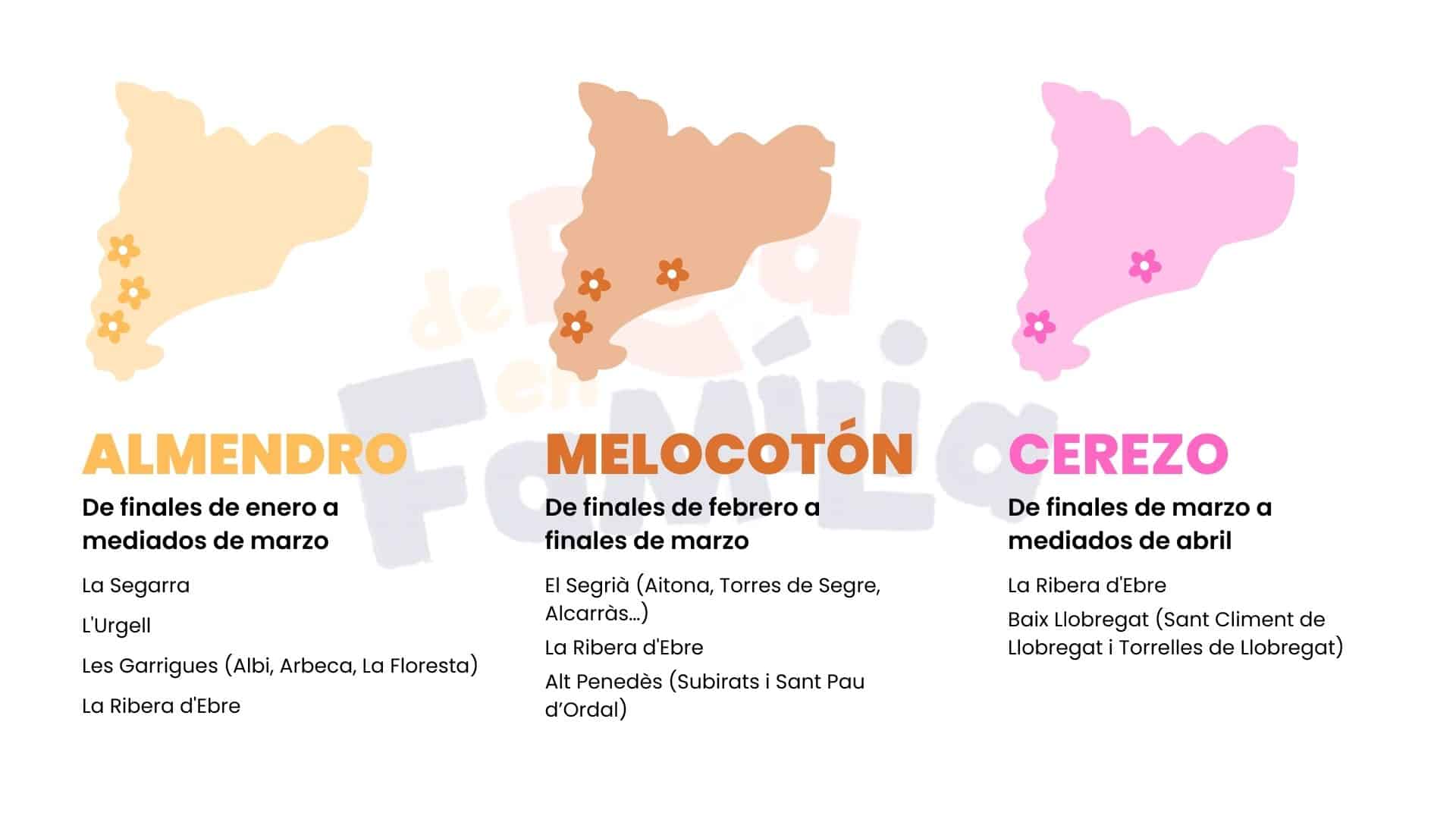 A continuación encontrarás un resumen con las mejores zonas para ver la floración en Cataluña 2026 y las fechas aproximadas para planificar la visita.