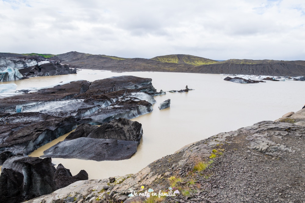 Así pues, con un desánimo considerable encima, seguimos la ruta por la carretera 1 y nos detuvimos un poco más allá para contemplar, desde dentro del coche y con la calefacción puesta, Fjallsárlón, otra laguna glaciar más pequeña y menos turística, pero muy similar a la de Jökulsárlón.
