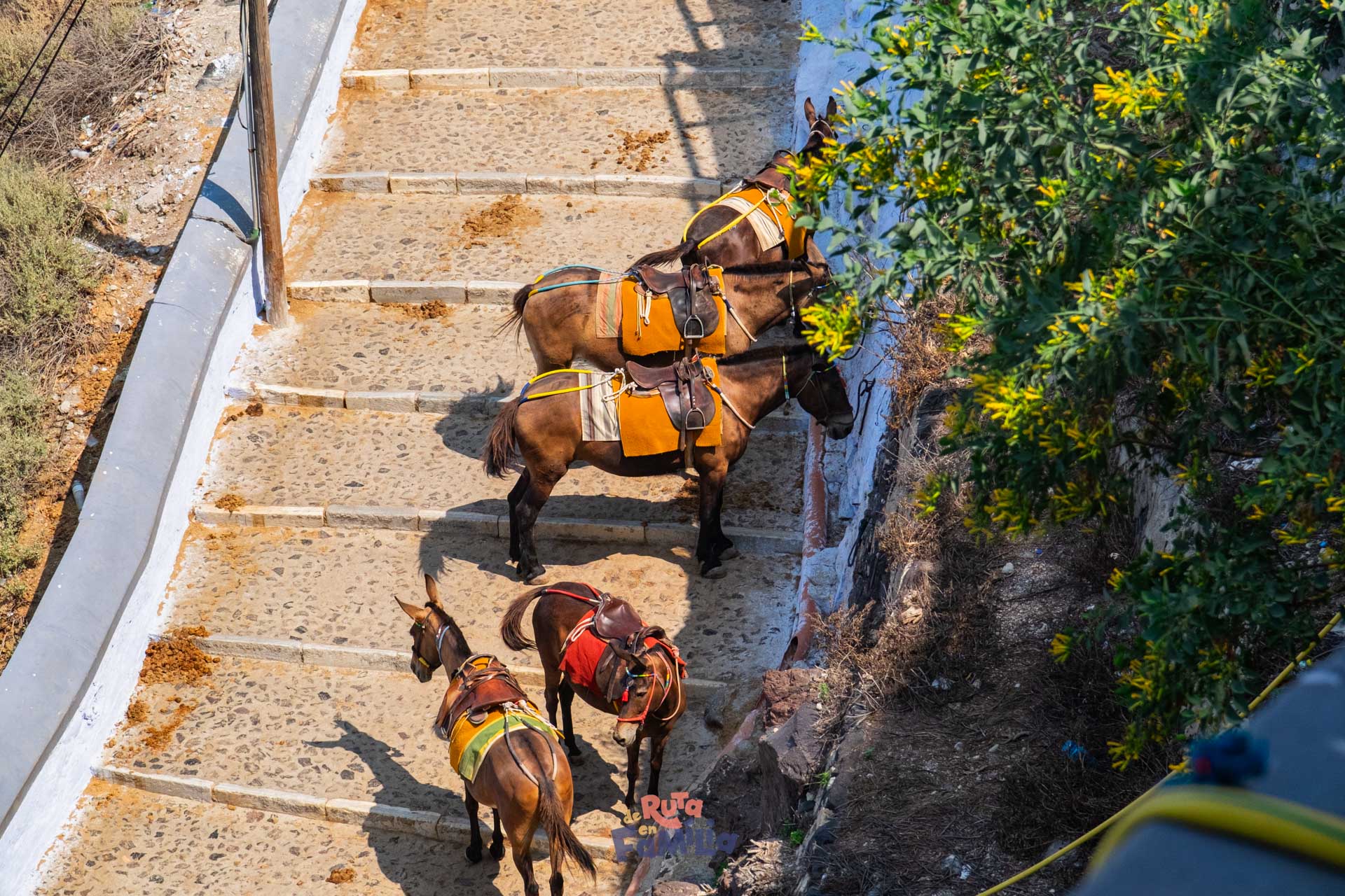 • No uses a los burros para subir o bajar del puerto. En Santorini, tanto en Fira como en Oia, se ofrecen burros para transportar a los turistas desde los puertos antiguos, Ammoudi y Gialos, respectivamente, hasta el centro de las poblaciones. Es cierto que son muchos escalones, pero en Fira hay un magnífico teleférico que puede ahorrarte el ascenso/descenso y en Oia puedes optar por un taxi. Si a ti te da pereza subir y bajar escalones imagínate a esos pobres animales que encima tienen que cargarte a ti. Es habitual verlos con temblores en las piernas de subir y bajar turistas…