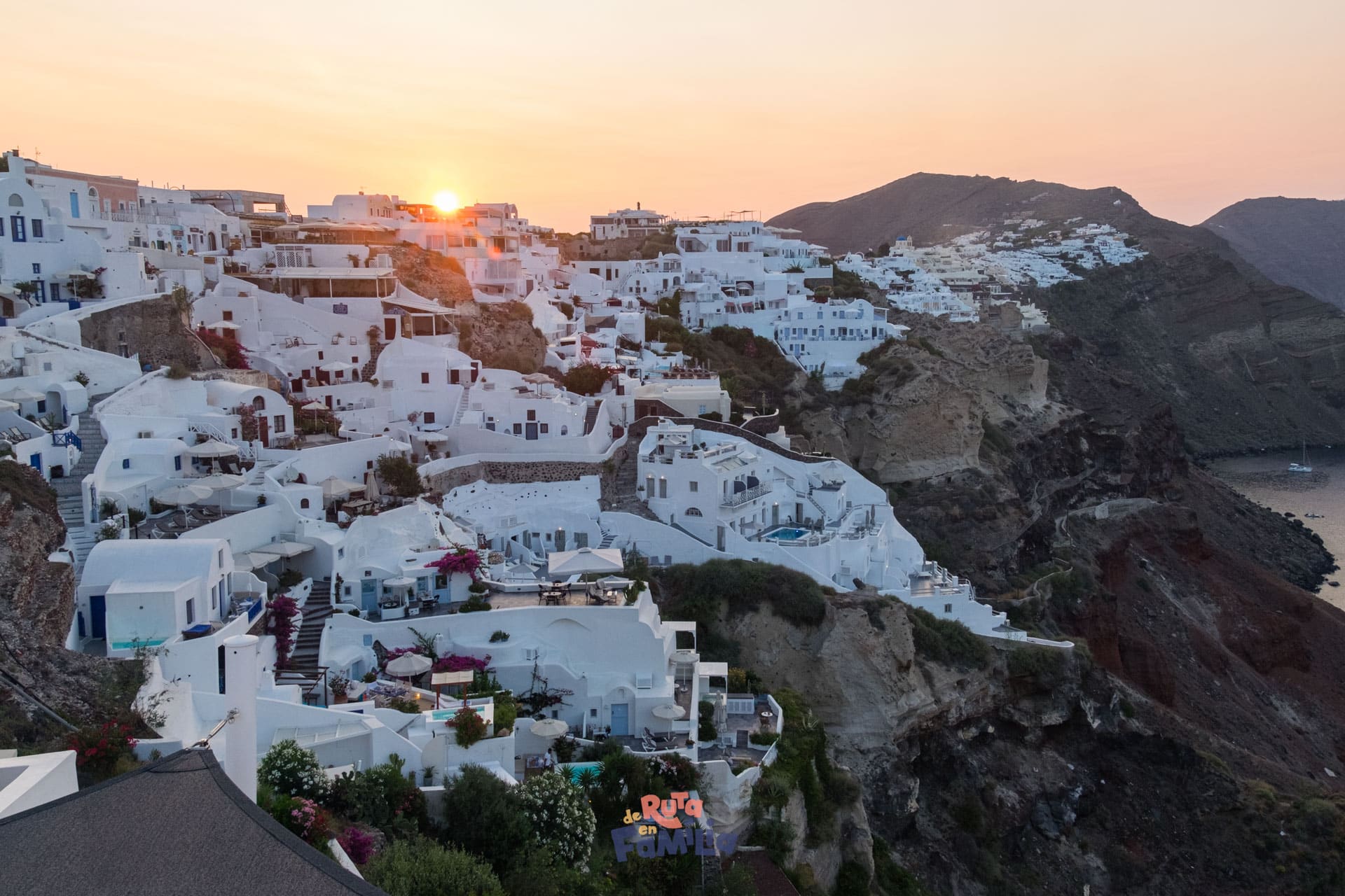 Dicen que los atardeceres de las Islas Griegas son de los más bonitos del mundo y eso lo saben los cientos de turistas que se dan cita en Oia cada día para contemplar la puesta de sol. El castillo de San Nicolás es uno de los puntos más concurridos, pero también se puede disfrutar del crepúsculo desde la iglesia de Ai Giannis Thalassinos, junto al faro, en la colina Kyra Panagia o en el patio de la iglesia Panagia Matrona.
