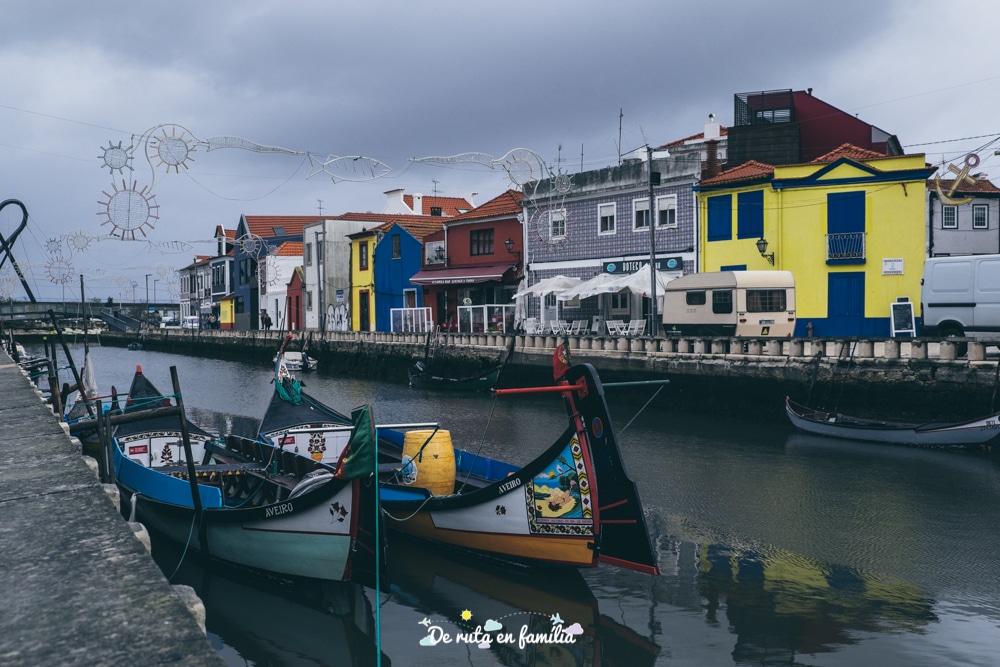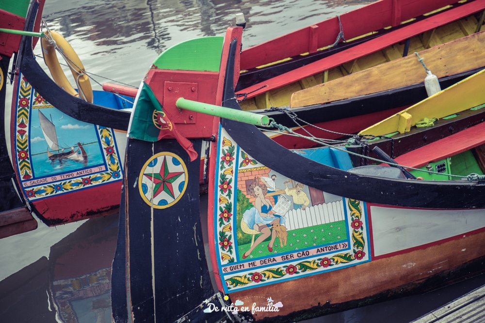 Tot i que el record més grat que guardem d’Aveiro són les festes de São Gonçalinho, en realitat hi havíem anat per conèixer aquest poble que rep el sobrenom de la Venècia portuguesa. Per què? Doncs perquè hi ha nombrosos canals per on naveguen els anomenats moliceiros, unes embarcacions que recorden a les gòndoles i que passegen als turistes. El dia no acompanyava gaire a fer-hi una passejada, però sàpigueu que els tiquets es poden comprar just abans de pujar-hi o a l’oficina de turisme (Rua João Mendonça, 8). Nosaltres ens vam conformar en contemplar les seves colorides decoracions que reprodueixen escenes de tot tipus (romàntiques, religioses, satíriques…).
