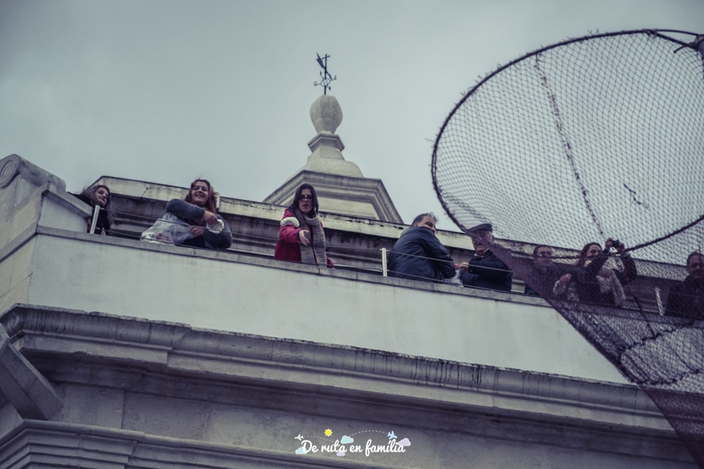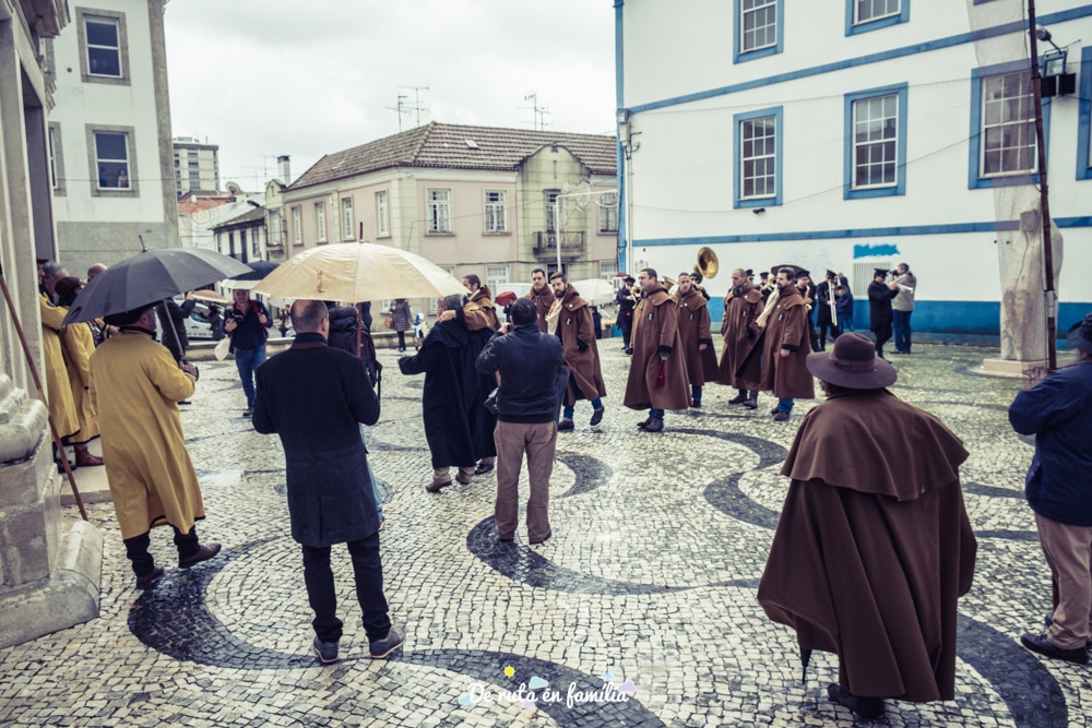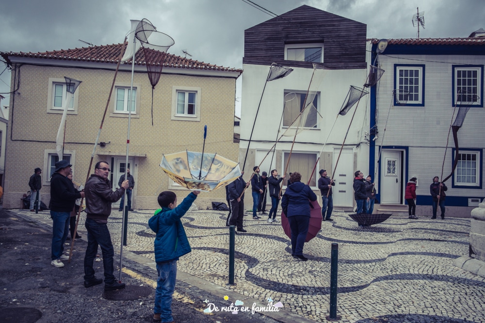 Resulta que la tradició diu que la gent d’Aveiro ha de pujar al terrat d’aquesta petita església i llençar aquests dolços com a senyal d’agraïment per totes les coses bones que els hi han succeït durant l’any. El curiós de tot plegat, i el que ens va cridar més l’atenció, és que a la plaça nombroses persones esperen amb paraigües col·locats al revés i salabres de pesca amb pals extra llargs per “pescar” aquests dolços. Hi havia autèntics experts!